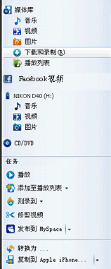 在当前显示的“媒体库”页面上,左侧的工具条中显示了命令列表和该页面的相关信息。列表随打开的视图或对话框而变: