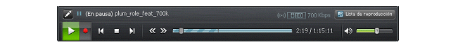 La barra de controles de reproducción alberga los controles que se usan para reproducir, grabar y realizar un seguimiento de las presentaciones multimedia en RealPlayer. Está disponible en todos los Modos de visualización (Normal