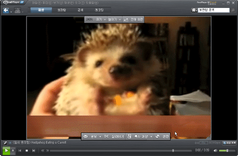 재생 탭을 클릭하면 열리는 이 페이지는 RealPlayer 비디오 및 시각화 기능 프레젠테이션 영역입니다.