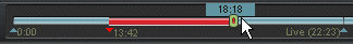 Wenn Sie Live-Streaming-Medien aufnehmen, zeigt der Positionsregler den Start- und den Endpunkt des aufgenommenen Clips an. Im folgenden Beispiel liegt der Startpunkt bei 7 Minuten und 11 Sekunden des Live-Streams, und der aktuelle Endpunkt liegt bei 10 Minuten und 22 Sekunden. Um die Aufnahme vor dem aktuellen Startpunkt zu beginnen, ziehen Sie den Schieberegler-Knopf auf eine Position vor dem aktuellen Startpunkt. Die Aufnahme beginnt am neuen, früheren Startpunkt.